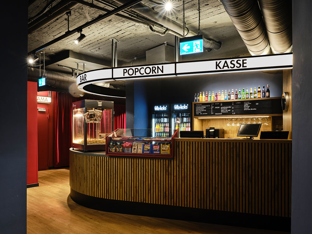 Ein zentrales Element des Projekts war das Farb- und Materialkonzept mit historischem Bezug auf das alte Interior aus vergangenen Zeiten. Jeder Raum und jeder Kinosaal erhielt ein eigenes Farbkonzept, übergreifend wurden immer wieder die gleichen Materialien verwendet um somit den roten Faden zu schaffen. Mit viel Feingefühl wurde der ursprüngliche Charakter des Filmkunstkinos bewahrt. So blieb beispielsweise die Plakatwand im Eingangsbereich erhalten, was den Charme des Kinos unterstreicht.