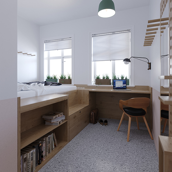 Ein besonderer Fokus liegt dabei auf Atmosphäre und Behaglichkeit. Die Räume sollen eine spielerische Leichtigkeit ausstrahlen ohne dabei zu „durchgestyled“ zu wirken. Die Bewohner sollen sich mit dem Ort identifizieren können, auch wenn der Aufenthalt nicht von Dauer ist.