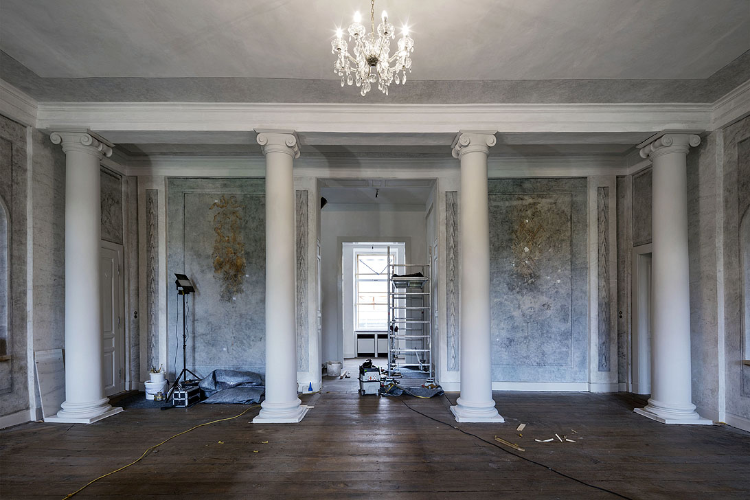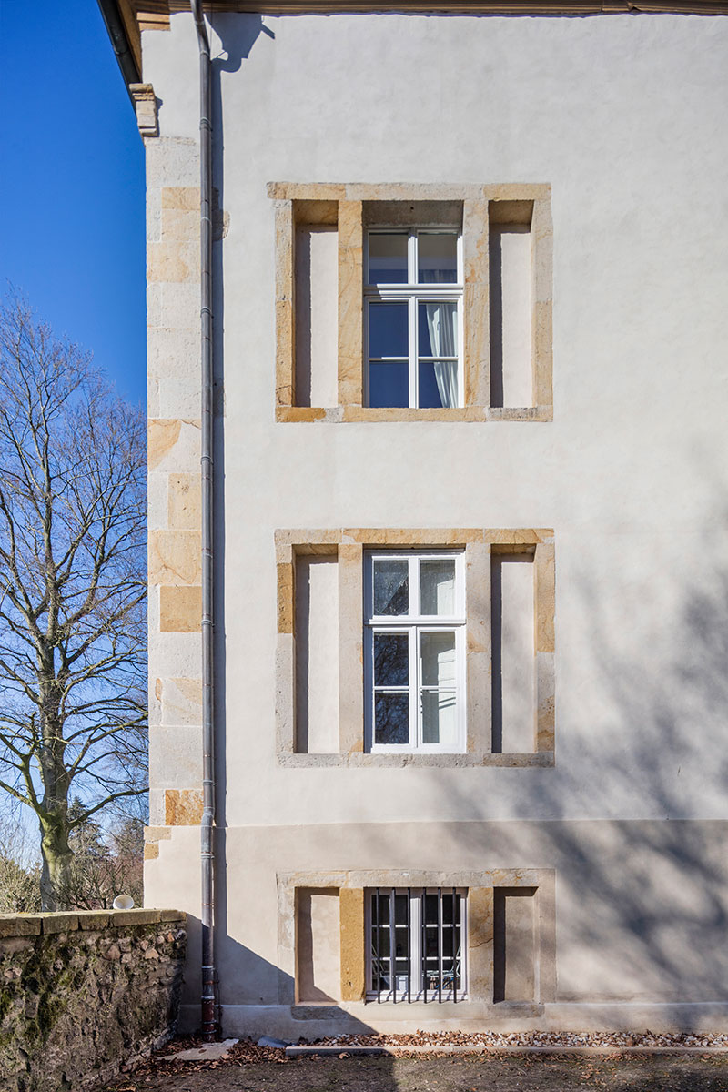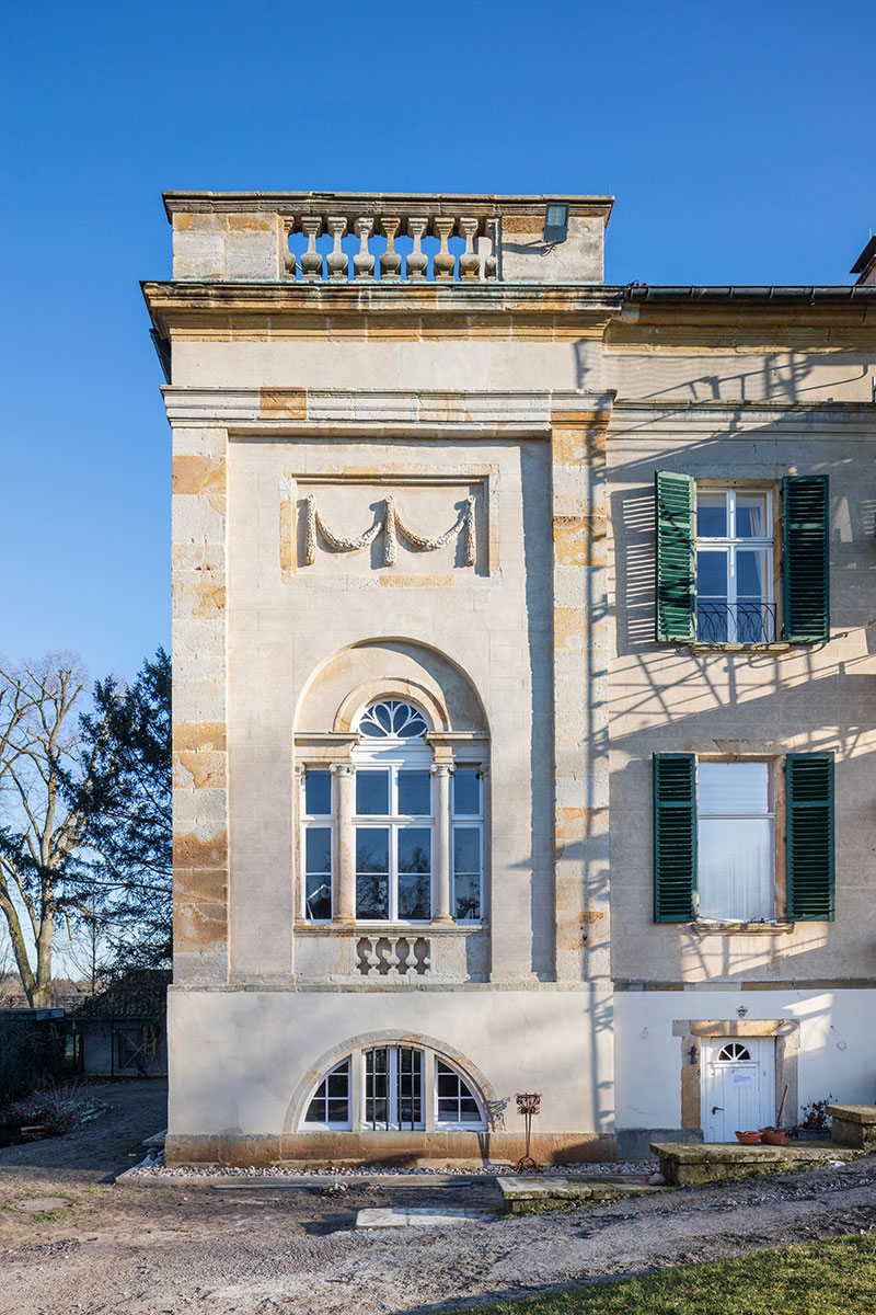 Unser Büro übernahm die Bestandsaufnahme, die Koordination aller Fachplanungsleistungen und die denkmalgerechte Umsetzung der Sanierungsmaßnahmen. Dazu gehörten die Restaurierung der Fassaden, umfangreiche Natursteinarbeiten, Instandsetzung historischer Fenster und Türen, Dach- und Fachsanierung sowie die Restaurierung von al-secco-Malereien. Im Zuge der Nutzungsänderung für museale Zwecke wurden Brandschutzmaßnahmen, Sanitär- und Entwässerungsanlagen erneuert, Wirtschaftsräume und Gesellschaftsräume im Hochparterre saniert und der Innenausbau für die Ausstellungsgestaltung neu konzipiert.