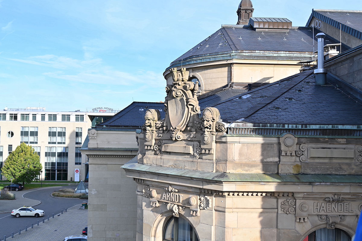 Im Rahmen eines internationalen Auswahlverfahrens wurde BRaWo mit der denkmalgerechten Sanierung von Dach, Fassade und Bauzier der Historischen Stadthalle beauftragt. Die Arbeiten umfassen die Instandsetzung von Schieferdächern, die Restaurierung der Natursteinfassade und dem kunstvollen Dekor einschließlich Skulpturen und Figuren. Zudem werden historische Holzfenster und Glasüberdachungen erneuert, gusseiserne Säulen saniert und sämtliche Klempnerbauteile, darunter Gesims- und Sohlbankabdeckungen, Traufgesimse und Fallrohre, vollständig ersetzt. Parallel erfolgt die Schadstoffsanierung, die Erneuerung des Blitzschutzes sowie die Umsetzung eines modernen Konzepts zur Gebäudeillumination.