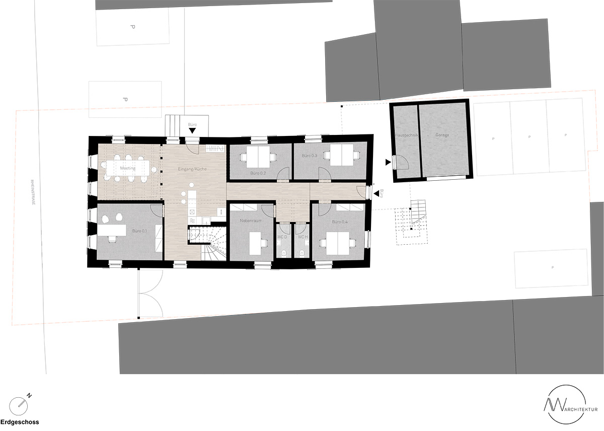 Die Bewahrung des ursprünglichen Charakters des Gebäudes hat höchste Priorität. Historische Details wie das gut erhaltene Fachwerk werden harmonisch in die neue Planung integriert.